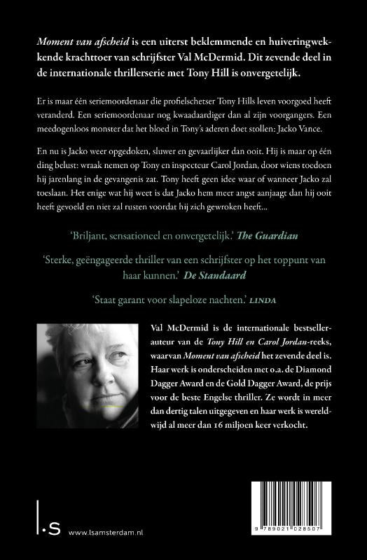 (POD) In Moment van afscheid, het zevende deel uit Val McDermids Tony Hill en Carol Jordan-reeks, duikt een seriemoordenaar uit het verleden weer op, en hij heeft het op Tony en Carol gemunt.