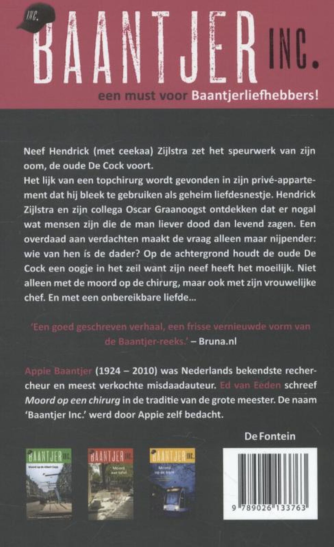 Het lijk van een topchirurg wordt gevonden in een appartement dat hij bleek te gebruiken als liefdesnestje. Graanoogst en Zijlstra ontdekken dat er veel mensen zijn die de man liever dood dan leven zagen. Er is een overdaad aan verdachten maar wie van hen is de dader? Op de achtergrond houdt De Cock, Zijlstra's oom, een oogje in het zeil want zijn neef heeft het moeilijk. Niet alleen met de moord op de chirurg, maar ook met zijn vrouwelijke chef. En met een onbereikbare geliefde.