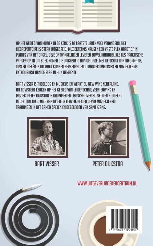 Bart Visser is theoloog en musicus en werkt bij New Wine Nederland. Hij adviseert kerken op het gebied van leiderschap, vernieuwing en muziek. Peter Dijkstra is drummer en liedschrijver bij Sela en studeert in deeltijd theologie aan de ETF in Leuven. Beiden geven muziekteams trainingen in het samen spelen en begeleiden van samenzang.
