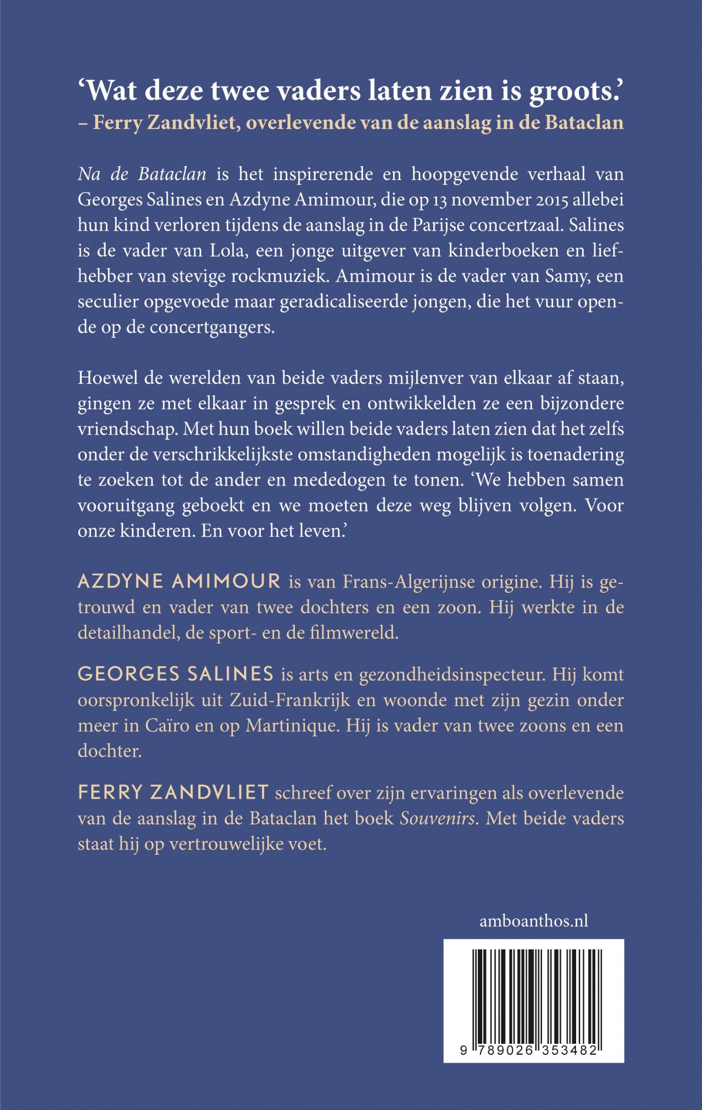 Na de Bataclan is het inspirerende en hoopgevende verhaal van Georges Salines en Azdyne Amimour, die op 13 november 2015 allebei hun kind verloren tijdens de aanslag in de Parijse concertzaal. Salines is de vader van Lola, een jonge uitgever van kinderboeken en liefhebber van stevige rockmuziek. Amimour is de vader van Samy, een seculier opgevoede maar geradicaliseerde jongen, die het vuur opende op de concertgangers.