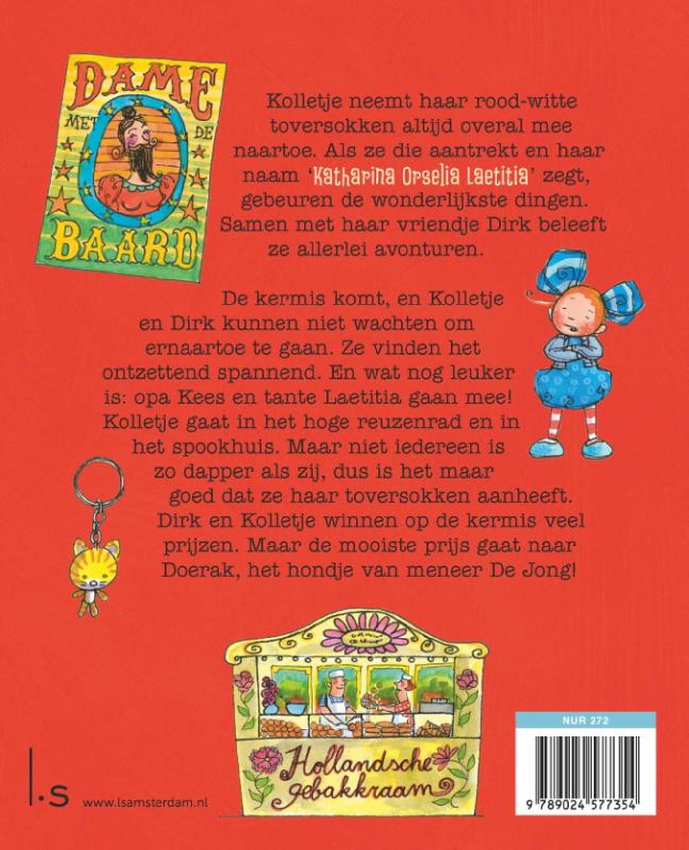 Kolletje en Dirk gaan naar de kermis. Papa, mama, Keesje, tante Laetitia en opa Kees gaan mee. Eerst gaat Kolletje met papa, opa en tante in het reuzenrad. Als ze bovenin zijn, wordt papa een beetje bleek. Gelukkig heeft Kolletje haar toversokken aan. Daarna gaan ze in de botsautootjes en verliest papa bijna zijn tanden. Wanneer ze het spookhuis zien, wil Kolletje daar natuurlijk ook in. Maar dan moet papa wel mee. En Dirk? Die maakt van zijn suikerspin een mooie, roze baard!