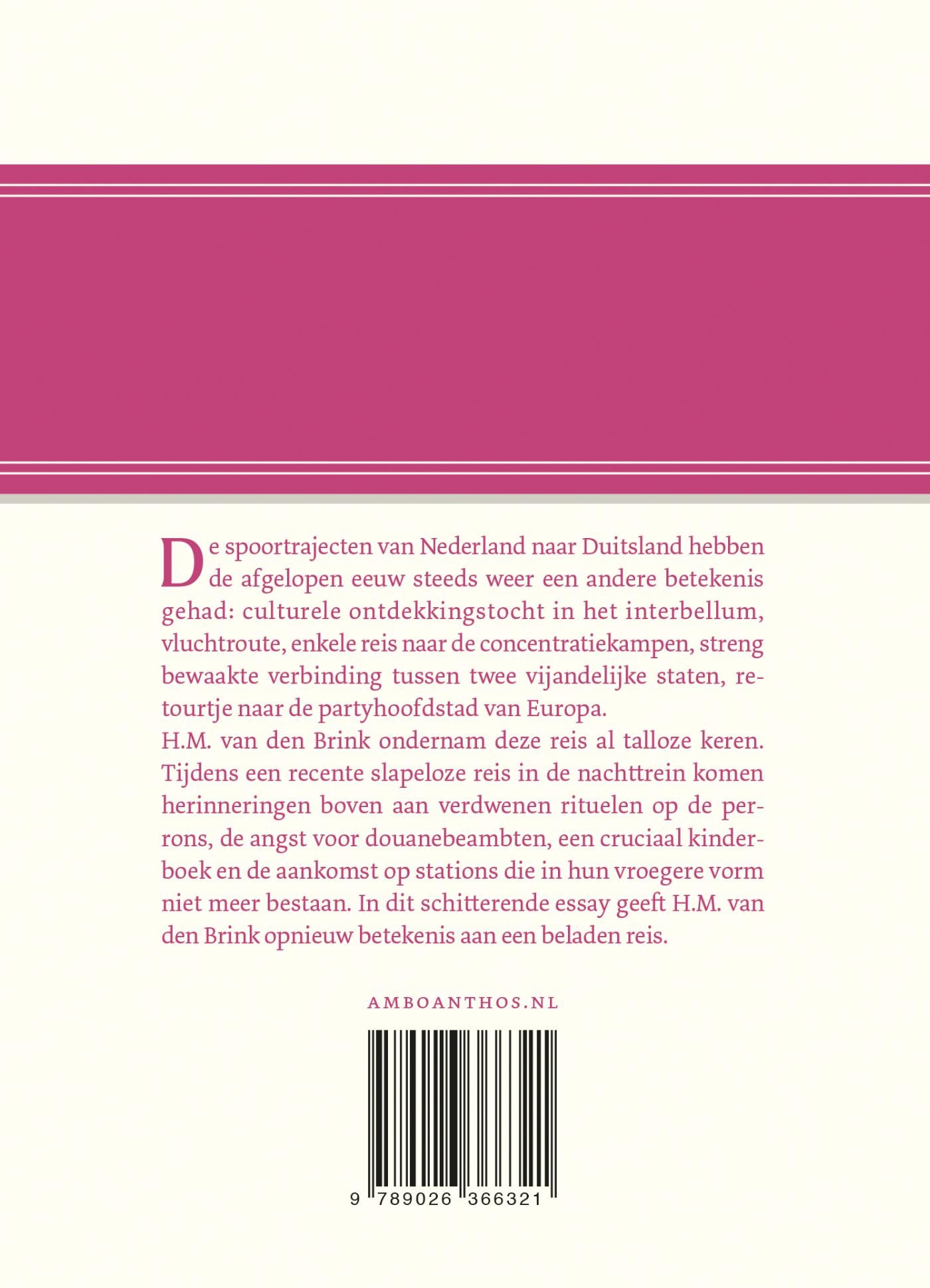 H.M. van den Brink ondernam deze reis al talloze keren. Tijdens een recente slapeloze reis in de nachttrein komen herinneringen boven aan verdwenen rituelen op de perrons, de angst voor douanebeambten, een cruciaal kinderboek en de aankomst op stations die in hun vroegere vorm niet meer bestaan. In dit schitterende essay geeft H.M. van den Brink opnieuw betekenis aan een beladen reis.