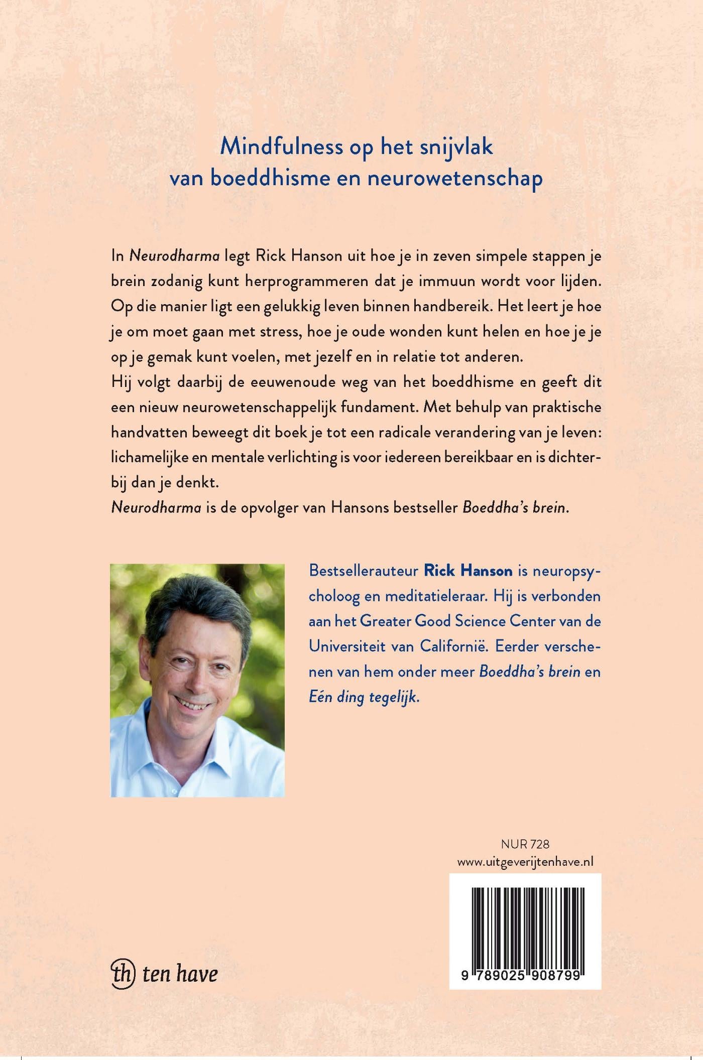 In ‘Neurodharma’ legt bestsellerauteur Rick Hanson uit hoe je in zeven stappen je brein zodanig kunt herprogrammeren dat je immuun wordt voor lijden en een gelukkig leven bereikt. Hij volgt daarbij de eeuwenoude weg van het boeddhisme en geeft dit een neurowetenschappelijk fundament. De belofte van dit boek is niets minder dan een radicale verandering van je leven: het laat zien dat verlichting voor iedereen bereikbaar is en dichterbij is dan je denkt.