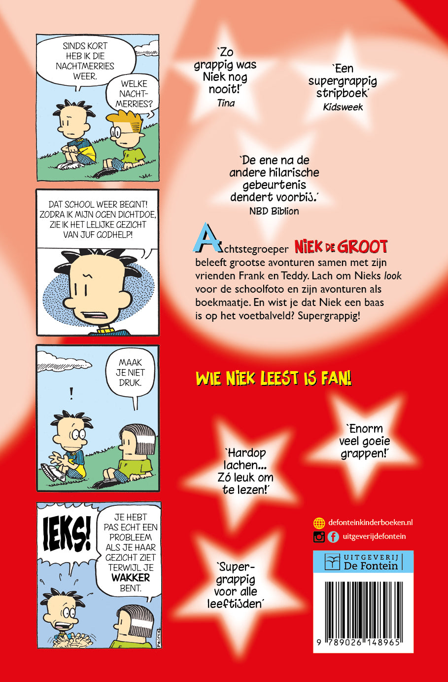 Achtstegroeper Niek de Groot is terug met een serie supergrappige strips. Hij is recordhouder nablijven, maar dat weerhoudt hem er niet van om groots te dromen. Met dit boek rol je 224 pagina’s lang over de grond van het lachen.