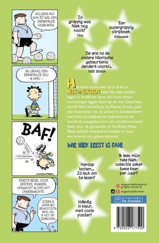 Het leven komt snel op je af als je Niek de Groot heet. Van een voetbal tegen je hoofd tot weer een boze leraar; verrassingen liggen altijd op de loer. Deze keer wordt Niek winkelhulp bij Klassic Komix, gaat zijn masterplan om de school te bombarderen met Valentijnsdagkaarten helemaal mis en wordt hij meegesleurd in een tenenkrommend feest voor de gevreesde juf Godhelp. Weet Niek zichzelf overeind te houden in deze wervelwind van gebeurtenissen?