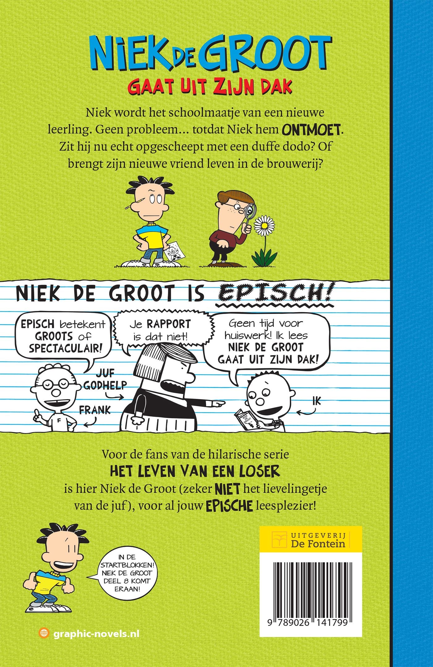 'Niek de Groot gaat uit zijn dak' is deel 7 in de waanzinnig populaire graphicnovelserie Niek de Groot van Lincoln Peirce. Humor en schaterlachen verzekerd. Voor de fans van Het leven van een Loser van Jeff Kinney.
