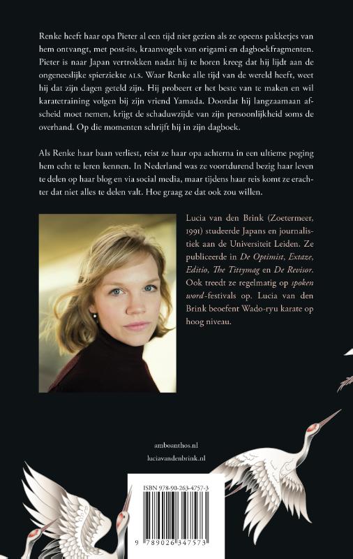 Renke heeft haar opa Pieter al een tijd niet gezien als ze opeens pakketjes van hem ontvangt, met post-its, kraanvogels van origami en dagboekfragmenten. Pieter is naar Japan vertrokken nadat hij te horen kreeg dat hij lijdt aan de ongeneeslijke spierziekte als. Waar Renke alle tijd van de wereld heeft, weet hij dat zijn dagen geteld zijn. Hij probeert er het beste van te maken en wil karatetraining volgen bij zijn vriend Yamada. Doordat hij langzaamaan afscheid moet nemen, krijgt de schaduwzijde van zijn persoonlijkheid soms de overhand. Op die momenten schrijft hij in zijn dagboek.