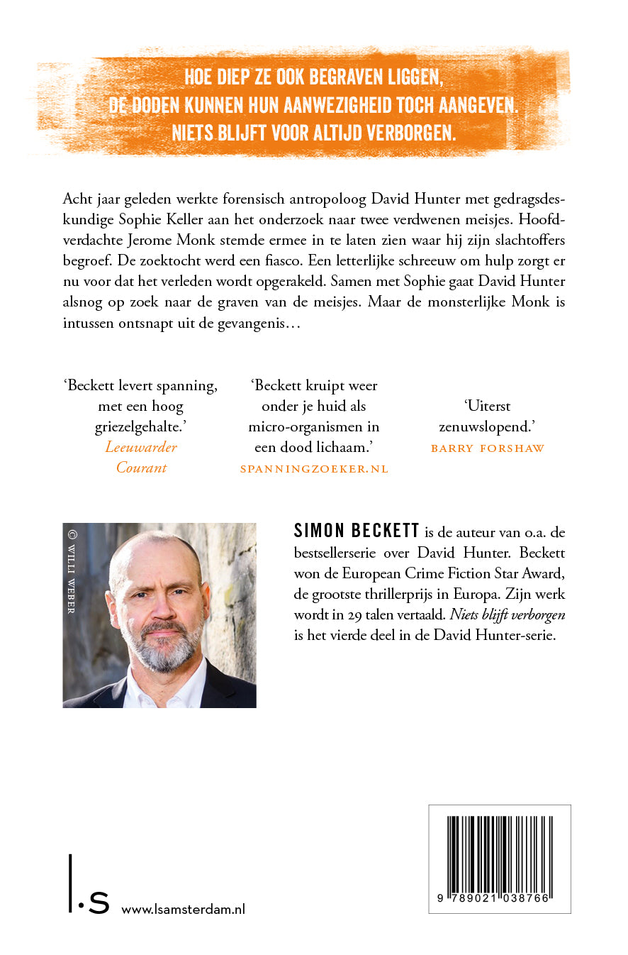 Simon Beckett werkte als freelance journalist voor Engelse kranten, zoals The Times, The Daily Telegraph en The Observer. Zijn thriller De geur van sterfelijkheid was zijn grote doorbraak als schrijver. Zijn boeken zijn inmiddels internationale bestsellers. Niets blijft verborgen is zijn vierde David Hunter thriller.