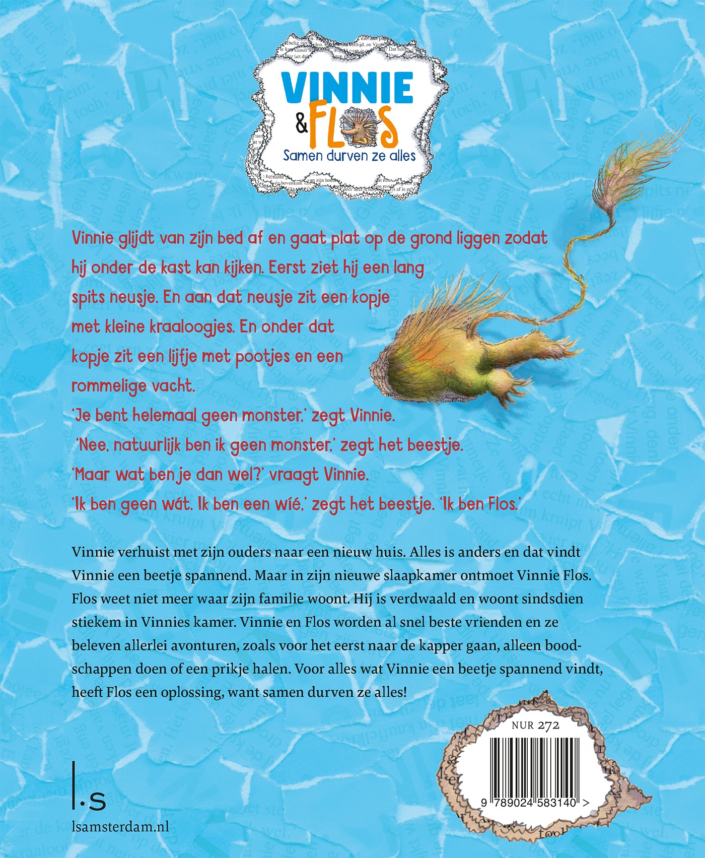 Vinnie verhuist met zijn ouders naar een nieuw huis. Alles is een beetje eng in het begin, ook de nieuwe slaapkamer. Maar dan ontmoet hij Flos die in een boek in zijn kamer woont. Vinnie en Flos worden dikke vrienden en beleven samen veel avonturen waarbij de één de ander en dan weer de ander de één uit de brand helpt.