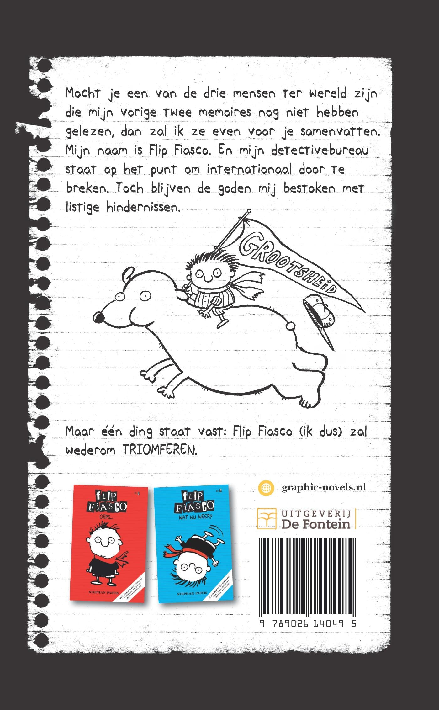 Het derde graphicnovelavontuur van Flip Fiasco in 'Flip Fiasco – Nóg een keer', geschreven door Flip Fiasco zelf, met hulp van Stephen Pastis.
