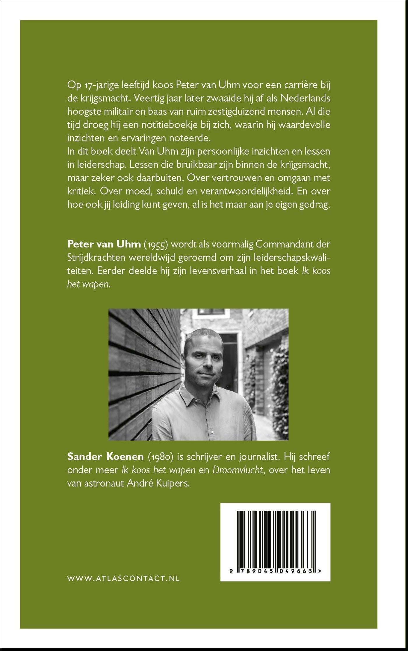 Op 17-jarige leeftijd koos Peter van Uhm voor een carrière bij de krijgsmacht. Veertig jaar later zwaaide hij af als Nederlands hoogste militair en baas van ruim zestigduizend mensen. Al die tijd droeg hij een notitieboekje bij zich, waarin hij waardevolle inzichten en ervaringen noteerde.