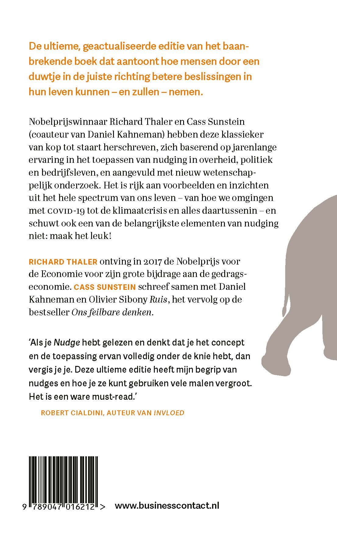 ‘Als je ‘Nudge’ hebt gelezen en denkt dat je het concept en de toepassing ervan volledig onder de knie hebt, dan vergis je je. Deze ultieme editie heeft mijn begrip van nudges en hoe je ze kunt gebruiken vele malen vergroot. Het is een ware must-read.’ – Robert Cialdini, auteur van ‘Invloed’
