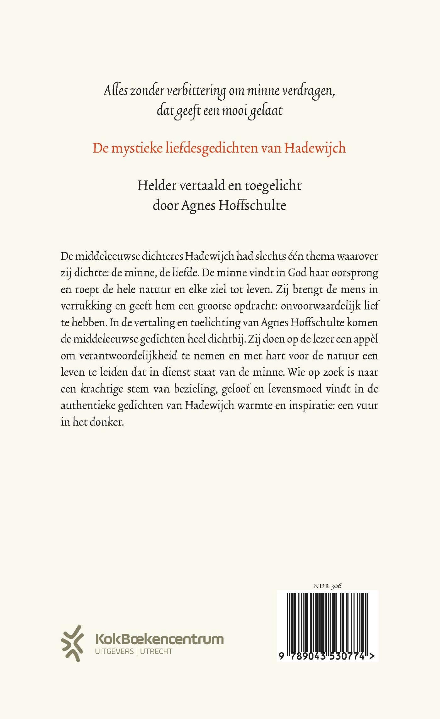 ‘Oerewoet’ is een bundel met mystieke liefdesgedichten van de middeleeuwse dichteres Hadewijch. De gedichten van Hadewijch zijn helder vertaald en worden toegelicht. Hadewijch had slechts één thema waarover zij dichtte: de minne, de liefde. De minne vindt in God haar oorsprong en roept de hele natuur en elke ziel tot leven. Zij brengt de mens in verrukking en geeft hem een grootse opdracht: onvoorwaardelijk liefhebben. Er is in deze tijd behoefte aan rolmodellen die een appel doen om verantwoordelijkheid te nemen, niet de makkelijkste weg te gaan en met aandacht voor de natuur een inspirerend leven te leiden. Hadewijch is zo’n voorbeeld. De vertaalster, drs. Agnes Hoffschulte, is pastoraal theologe en werkt in Deventer.