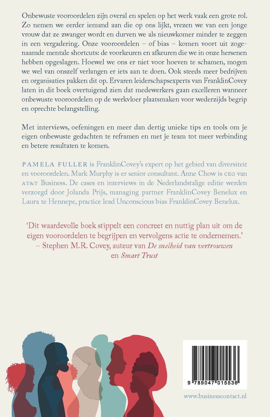 Hoewel we ons er niet voor hoeven te schamen, mogen we wel van onszelf verlangen er iets aan te doen. Ook steeds meer bedrijven en organisaties pakken dit op. Ervaren leiderschapsexperts van FranklinCovey laten in dit boek overtuigend zien dat medewerkers gaan excelleren wanneer onbewuste vooroordelen op de werkvloer plaatsmaken voor wederzijds begrip en oprechte belangstelling.