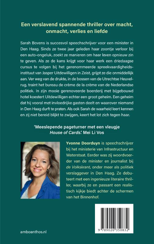 Yvonne Doorduyn is speechschrijver bij het ministerie van Infrastructuur en Waterstaat. Met Onmacht geeft ze en passant een realistisch inkijkje geeft achter de schermen van het Binnenhof.
