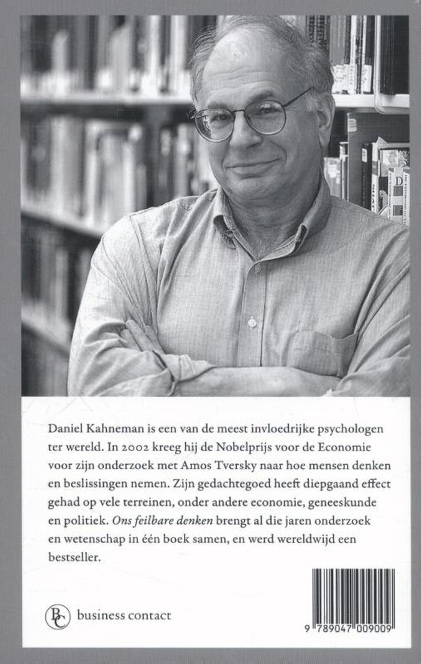 In deze moderne klassieker legt Daniel Kahneman uit waarom we zo vaak verkeerde inschattingen maken, en geeft tips om deze valkuilen te vermijden en betere beslissingen te nemen. Hij toont aan dat we veel minder rationeel zijn dan we denken. Waarom beoordelen we dezelfde situatie anders voor en na de lunch? Waarom denken we dat knappe mensen competenter zijn dan anderen?
