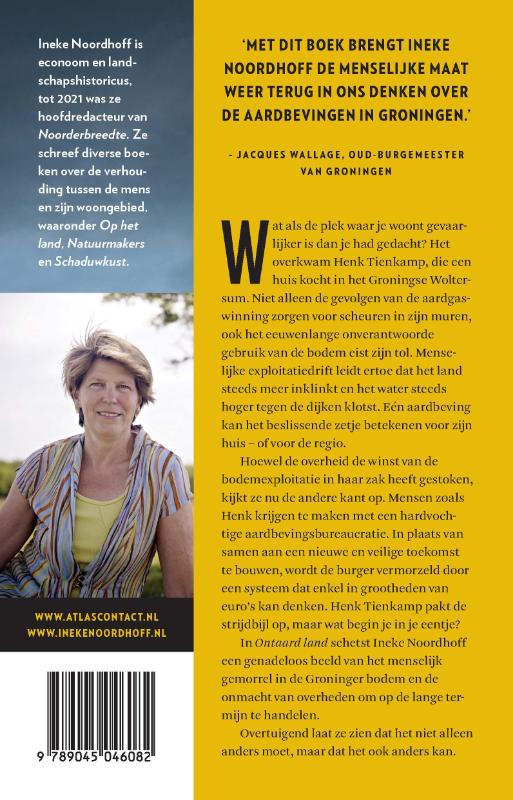 In Ontaard land schetst Ineke Noordhoff een genadeloos beeld van het menselijk gemorrel in de Groninger bodem. Ze vertelt het verhaal van Henk Tienkamp, die een huis kocht in het Groningse Woltersum maar er al snel achter kwam dat die plek minder veilig was dan hij had gedacht. Niet alleen de gevolgen van de aardgaswinning zorgen voor scheuren in zijn muren, ook het eeuwenlange onverantwoorde gebruik van de bodem eist zijn tol. Menselijke exploitatiedrift leidt ertoe dat het land steeds meer inklinkt en het water steeds hoger tegen de dijken klotst. Eén aardbeving kan het beslissende zetje betekenen voor zijn huis – of voor de regio.