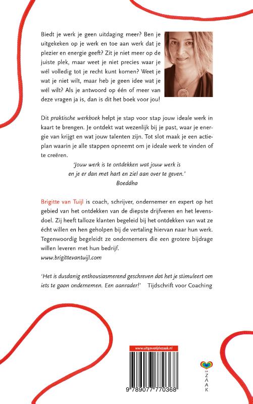 Ben je op zoek naar meer plezier in je werk? Zoek je werk dat je meer voldoening geeft en dat helemaal bij je past? Als je antwoord op één van deze vragen ja is, is dit boek voor jou. In 9 stappen ontdek je tijdens een zelfonderzoek wat écht bij jou past. Je ontdekt hoe je meer energie kunt krijgen en krijgt inzicht in gedachten waarmee je jezelf in de weg zit. Je gaat de rode draad zien en ontdekt wat je echt wilt.