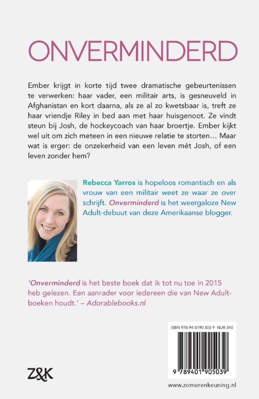 'Onverminderd' van Rebecca Yarros is rauw, realistisch en romantisch. Dat rauwe begint al bij de openingsscène, waarin Ember het dramatische nieuws krijgt dat haar vader is gesneuveld in Afghanistan. In die toch al kwetsbare periode komt ze er ook nog achter dat haar vriendje Riley het doet met haar huisgenoot. Ember vindt steun bij Josh, de ijshockeycoach van haar broertje. Maar ze kijkt wel uit om zich in een nieuwe relatie te storten… 'Onverminderd' is het eerste deel van de populaire Flight & Glory-serie van Rebecca Yarros.