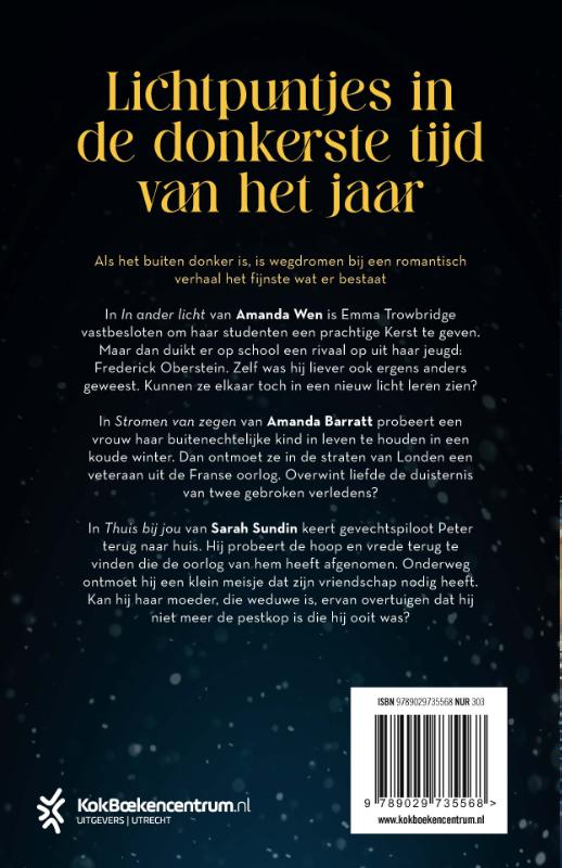 De donkerste maand van het jaar leent zich bij uitstek om te lezen. In deze kerstnovellebundel zijn drie winterse novelles opgenomen van bekende auteurs uit ons fonds: Sarah Sundin, Amanda Barratt en Amanda Wen. Om cadeau te geven of gewoon zelf te houden. Omdat wegdromen bij een romantisch verhaal het fijnste is wat er bestaat, zeker als het buiten koud is. En ook na de feestdagen zijn deze historische novelles een heerlijk tijdverdrijf!