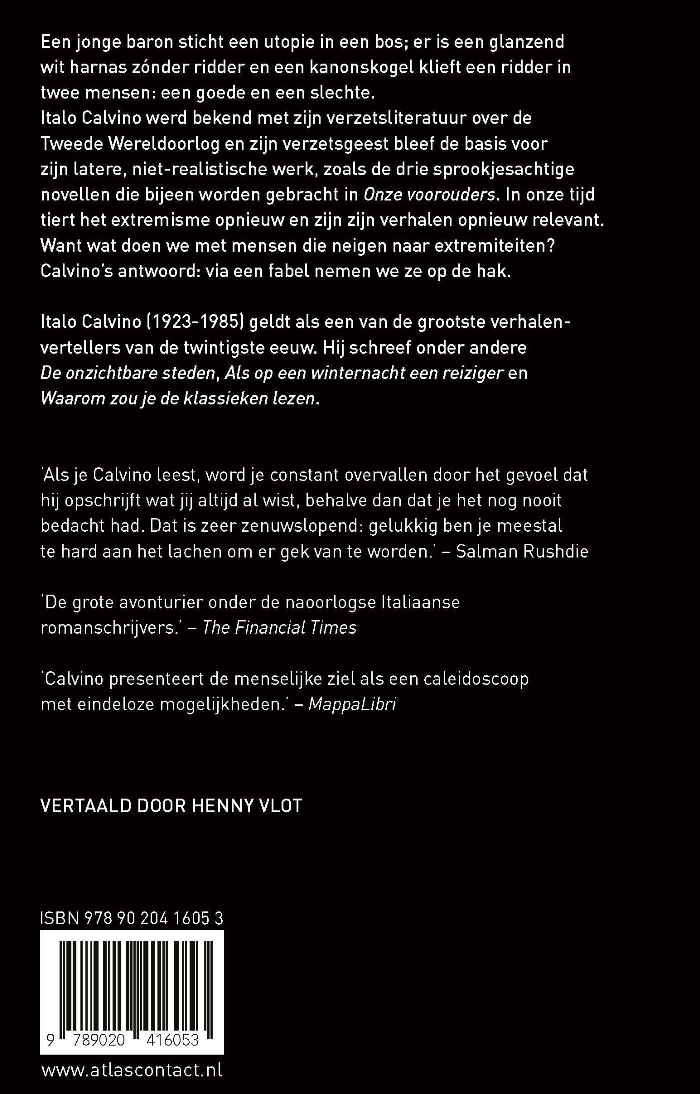 Een jonge baron sticht een utopie in een bos; er is een glanzend wit harnas zónder ridder en een kanonskogel klieft een ridder in twee mensen: een goede en een slechte.
