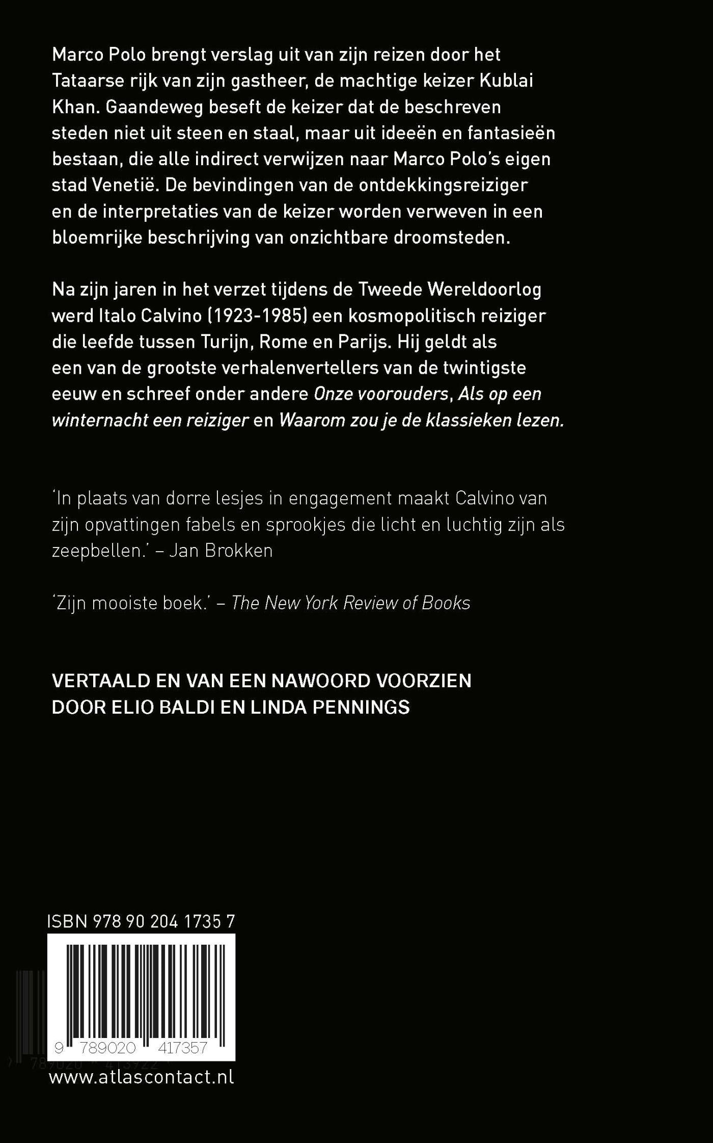 Marco Polo brengt aan zijn gastheer, de machtige Kublai Kan, Keizer der Tataren, verslag uit van zijn reizen. Langzaamaan beseft de keizer echter dat hem fictieve plaatsen worden beschreven, die alle verwijzen naar Marco Polo's geboortestad Venetië. De 'werkelijke' ervaringen van de ontdekkingsreiziger en de interpretatie van de keizer worden verweven in een bloemrijke beschrijving van onzichtbare droomsteden.