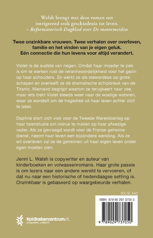 ‘Onzinkbaar’ van Jenni L. Walsh is gebaseerd op het waargebeurde verhaal van Violet Jessop, die drie scheepsrampen overleefde en op het verhaal van de negenendertig vrouwen van de Special Operations Executive.