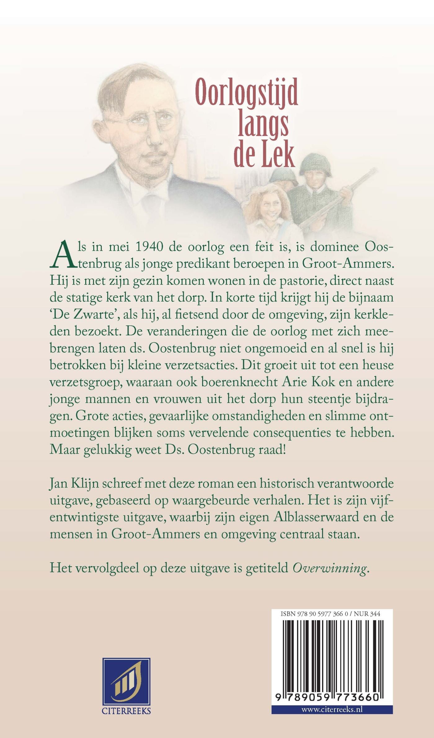 Als in mei 1940 de oorlog begint, is dominee Oostenbrug als jonge predikant beroepen in Groot-Ammers. Hij is met zijn gezin komen wonen in de pastorie, direct naast de statige kerk van het dorp. In korte tijd krijgt hij de bijnaam `De Zwarte , als hij, al fietsend door de omgeving, zijn kerkleden bezoekt. De veranderingen die de oorlog met zich meebrengen laten ds. Oostenburg niet ongemoeid en al snel is hij betrokken bij kleine verzetsacties. Dit groeit uit tot een heuse verzetsgroep, waaraan ook boerenknecht Arie Kok en andere jonge mannen en vrouwen uit het dorp hun steentje bijdragen. Grotere acties, gevaarlijke omstandigheden en slimme ontmoetingen blijken soms vervelende consequenties te hebben. Maar gelukkig weet ds. Oostenbrug raad!