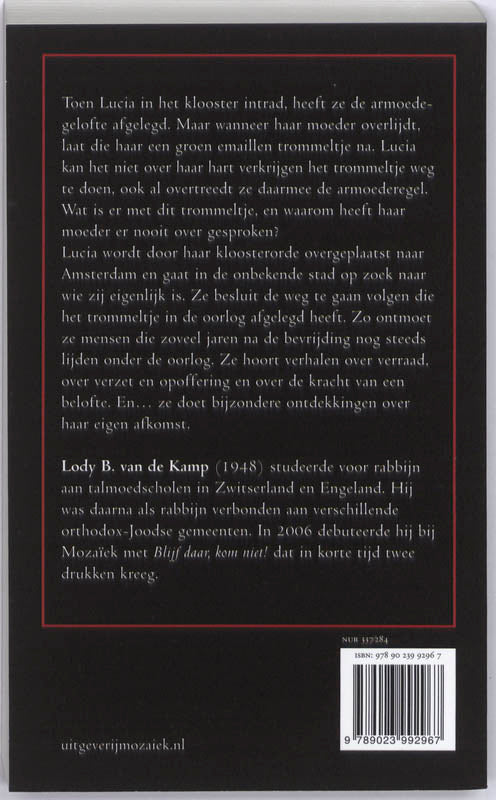 Lucia wordt door haar kloosterorde overgeplaatst naar Amsterdam en gaat in de onbekende stad op zoek naar wie zij eigenlijk is. Ze besluit de weg te gaan volgen die het trommeltje in de oorlog afgelegd heeft. Zo ontmoet ze mensen die zoveel jaren na de bevrijding nog steeds lijden onder de oorlog. Ze hoort verhalen over verraad, over verzet en opoffering en over de kracht van een belofte. En... ze doet bijzondere ontdekkingen over haar eigen afkomst.
