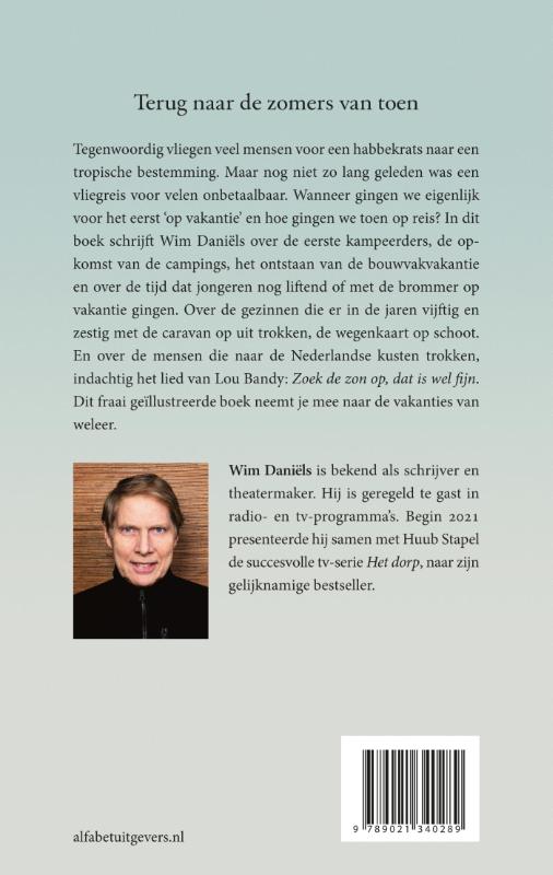 Tegenwoordig vliegen we voor een habbekrats naar een tropische bestemming. Maar nog niet zo heel lang geleden was een vliegreis voor velen onbetaalbaar. Hoe gingen we toen op vakantie? Met de fiets, te voet, met de trein of zelfs met de auto. Met een imperiaal op het dak, de spullen vastgezet onder een klapperend zeil. Wim Daniëls schrijft over hoe we vroeger vakantie vierden. Over de eerste durfals die, al aan het begin van de vorige eeuw, Europa bereisden per fiets. Over de gezinnen die er in de jaren vijftig en zestig met de caravan op uit gingen, de wegenkaart op schoot, over kronkelige wegen die de reizigers dwars door stille dorpjes leidden. En over de mensen die in eigen land de zon opzochten, die naar de Wadden of naar Zeeland afreisden, gewoon kamperen met de tent. Dit vrolijk geïllustreerde boek neemt je mee naar de zomers van weleer.