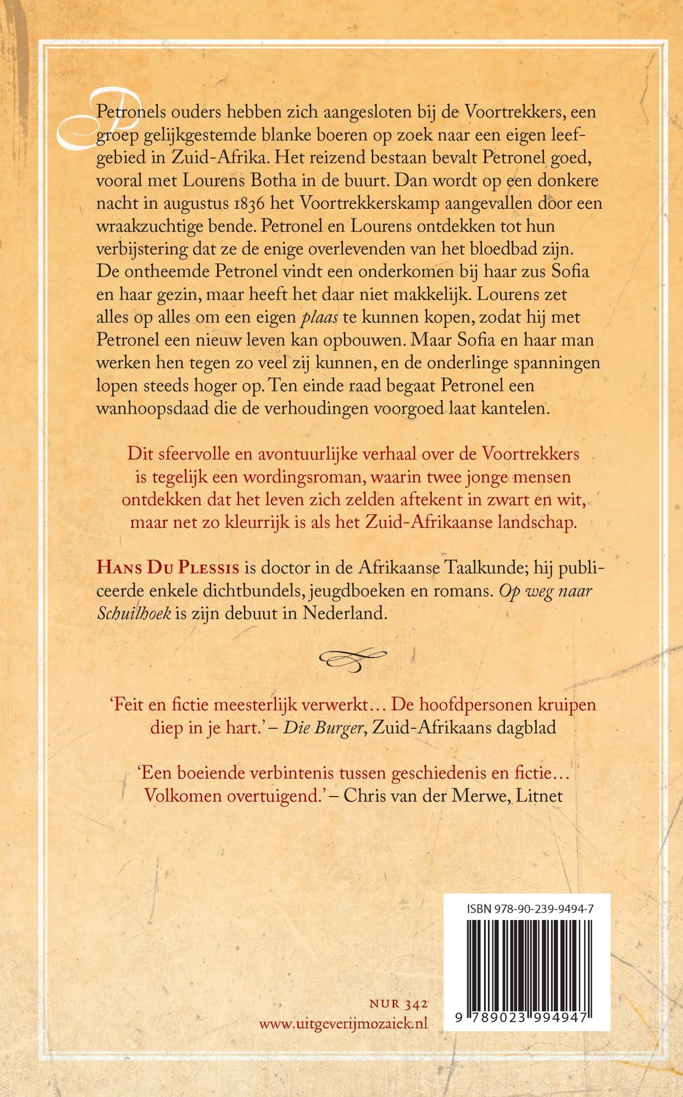 Dit sfeervolle en avontuurlijke verhaal over de Voortrekkers is tegelijk een wordingsroman, waarin twee jonge mensen ontdekken dat het leven zich zelden aftekent in zwart en wit, maar net zo kleurrijk is als het Zuid-Afrikaanse landschap.
