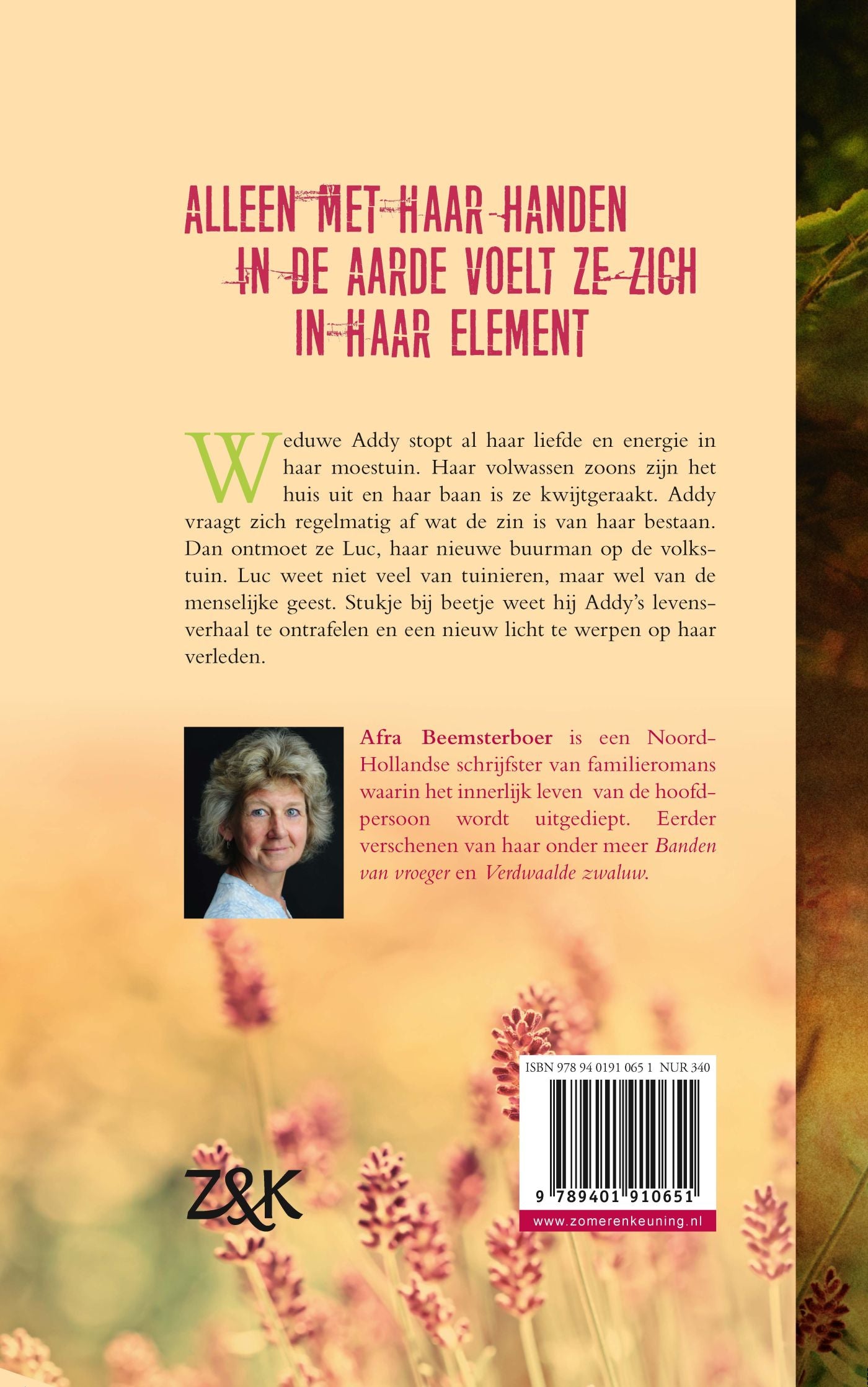 Weduwe Addy stopt in de roman Open slot van Afra Beemsterboer al haar liefde in haar moestuin. Haar volwassen zoons zijn het huis uit en haar baan is ze kwijtgeraakt, dus veel keus heeft ze niet meer. Addy vraagt zich regelmatig af wat het nut is van haar bestaan. Dan ontmoet ze Luc, haar nieuwe buurman op de volkstuin. Luc weet niet veel van tuinieren, maar hoe hij mensen kan laten openbloeien, weet hij wel. Stukje bij beetje weet hij Addy’s levensverhaal te ontrafelen en een nieuw licht te werpen op haar verleden. Open slot is een ontroerende roman van de Noord-Hollandse familieromanauteur Afra Beemsterboer.