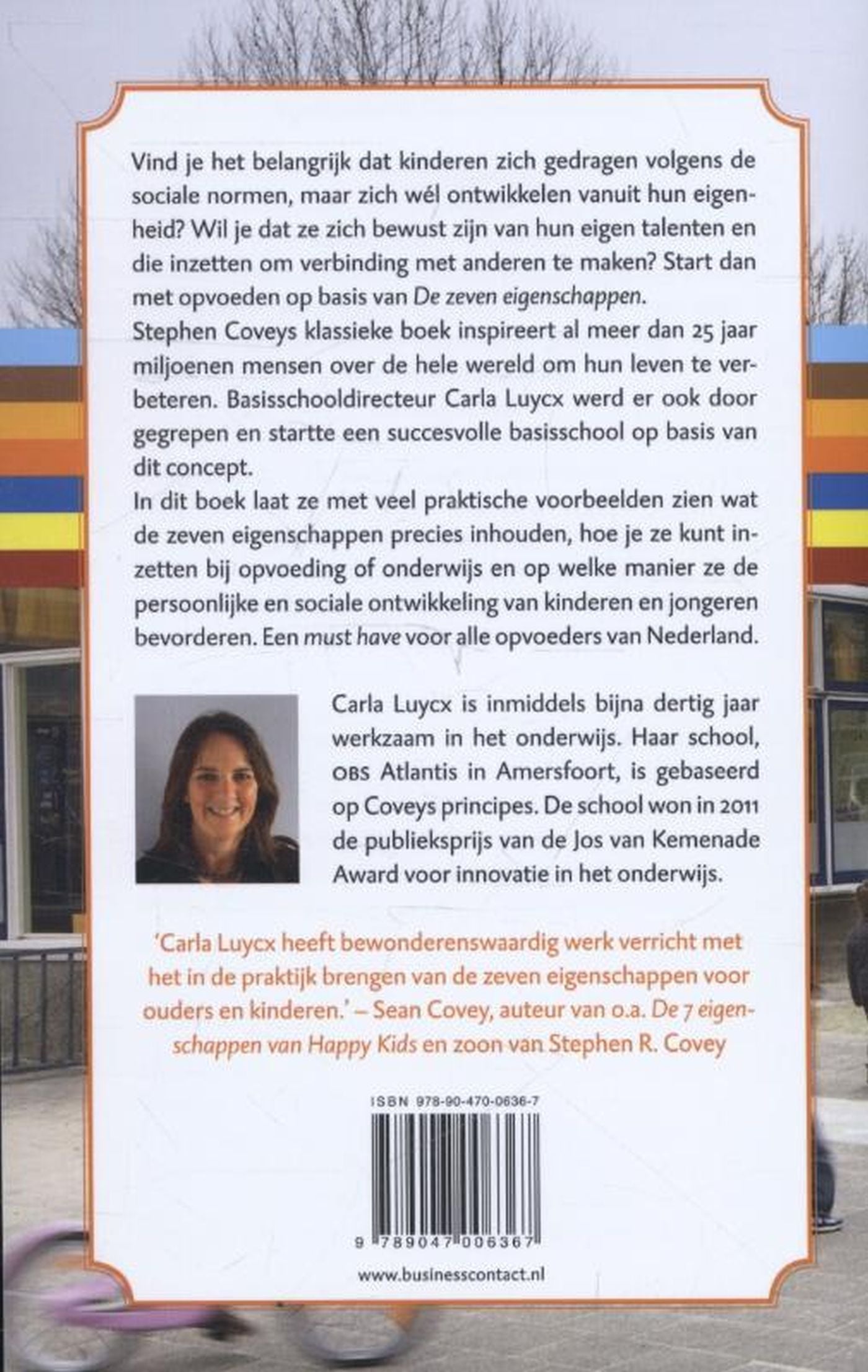 In dit boek laat ze met veel praktische voorbeelden zien wat de zeven eigenschappen precies inhouden, hoe je ze kunt inzetten bij de opvoeding en op welke manier ze de persoonlijke en sociale ontwikkeling van kinderen en jongeren bevorderen. Een must have voor alle opvoeders van Nederland. Met een voorwoord van Sean Covey