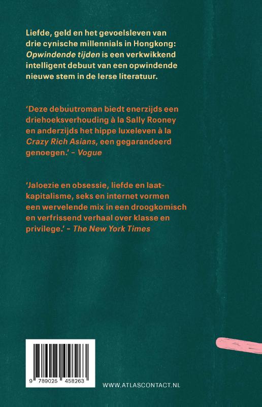 ‘Opwindende tijden’ van Naoise Dolan gaat over liefde, geld en het gevoelsleven van drie cynische millennials. De Dublinse Ava is onlangs in Hongkong komen wonen en vult haar dagen met Engelse les geven aan rijke kinderen. Julian is een bankier die graag geld uitgeeft aan Ava, met haar naar bed gaat en fluctuerende valuta met haar bespreekt. Maar als ze hem vraagt of hij van haar houdt, komt hij niet verder dan: ‘Ik mag je heel erg graag.’
