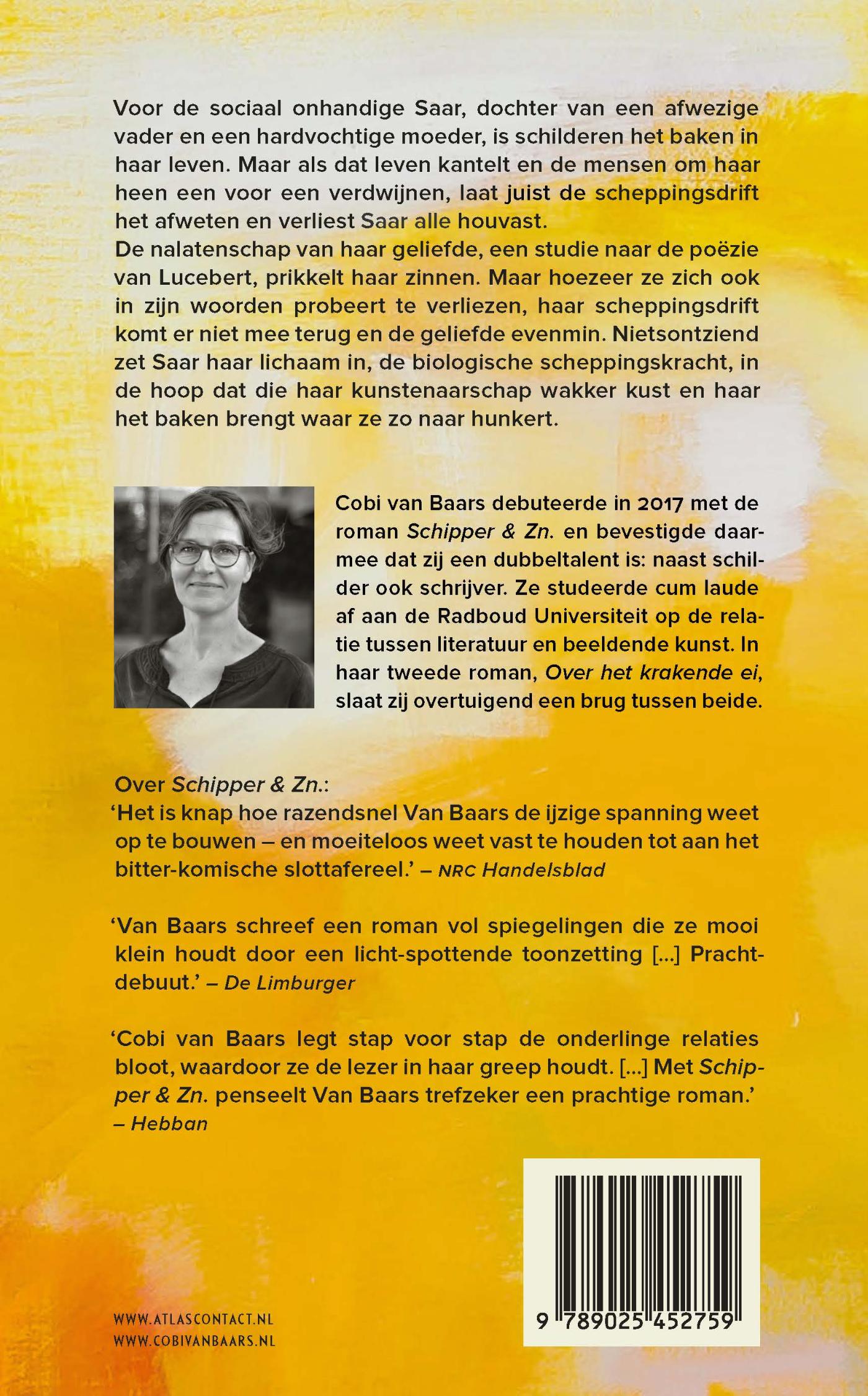 In ‘Over het krakende ei’, slaat ‘Cobi van Baars’ in haar tweede roman van, overtuigend een brug tussen beeldende kunst en literatuur.