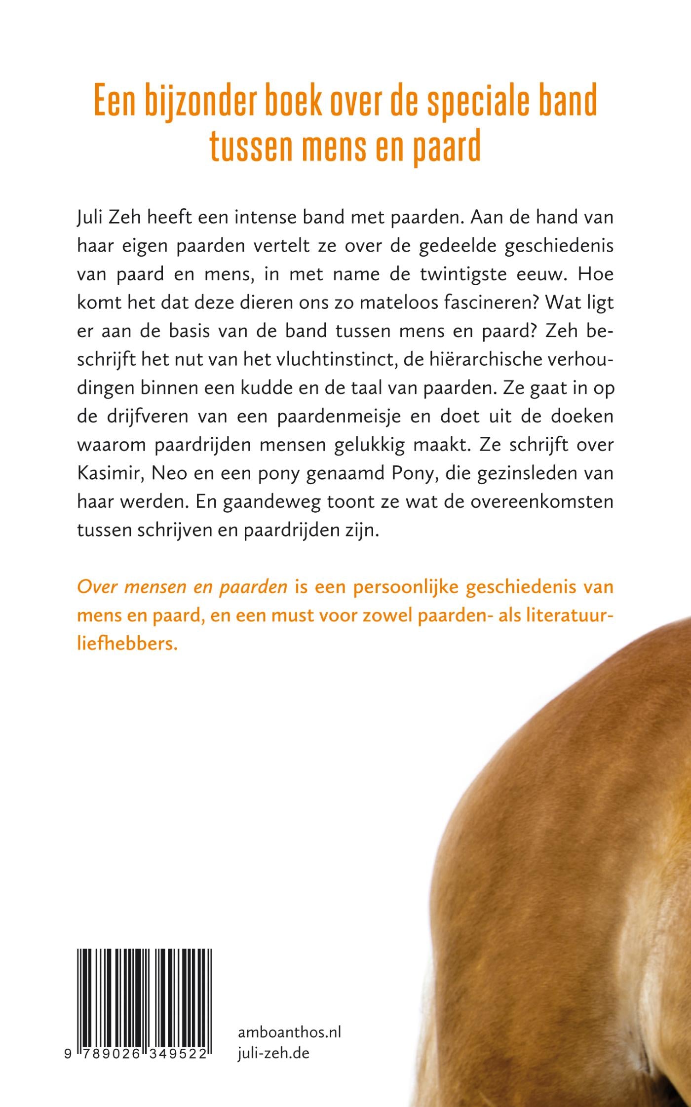 In Over mensen en paarden vertelt Juli Zeh, auteur van onder andere Ons soort mensen en Nieuwjaar, over haar grote liefde en mateloze fascinatie voor paarden. Over mensen en paarden is een persoonlijke geschiedenis van mens en paard, en een must voor paarden- en literatuurliefhebbers.