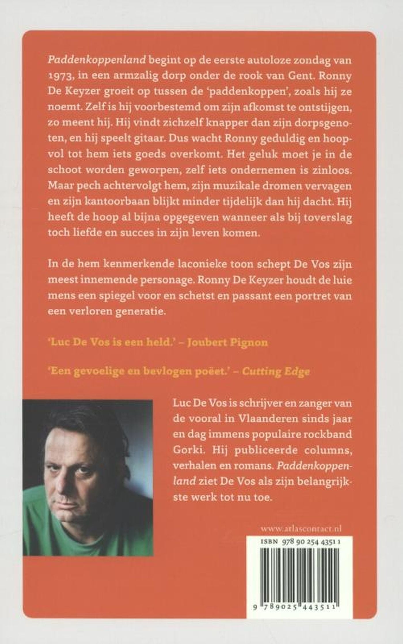Paddenkoppenland begint op de eerste autoloze zondag van 1973, in een armzalig dorp onder de rook van Gent. Ronny De Keyzer groeit op tussen de ‘paddenkoppen’, zoals hij ze noemt. Zelf is hij voorbestemd om zijn afkomst te ontstijgen, zo meent hij. Hij vindt zichzelf knapper dan zijn dorpsgenoten, en hij speelt gitaar. Dus wacht Ronny geduldig en hoopvol tot hem iets goeds overkomt. Het geluk moet je in de schoot worden geworpen, zelf iets ondernemen is zinloos. Maar pech achtervolgt hem, zijn muzikale dromen vervagen en zijn kantoorbaan blijkt minder tijdelijk dan hij dacht. Hij heeft de hoop al bijna opgegeven wanneer als bij toverslag toch liefde en succes in zijn leven komen.