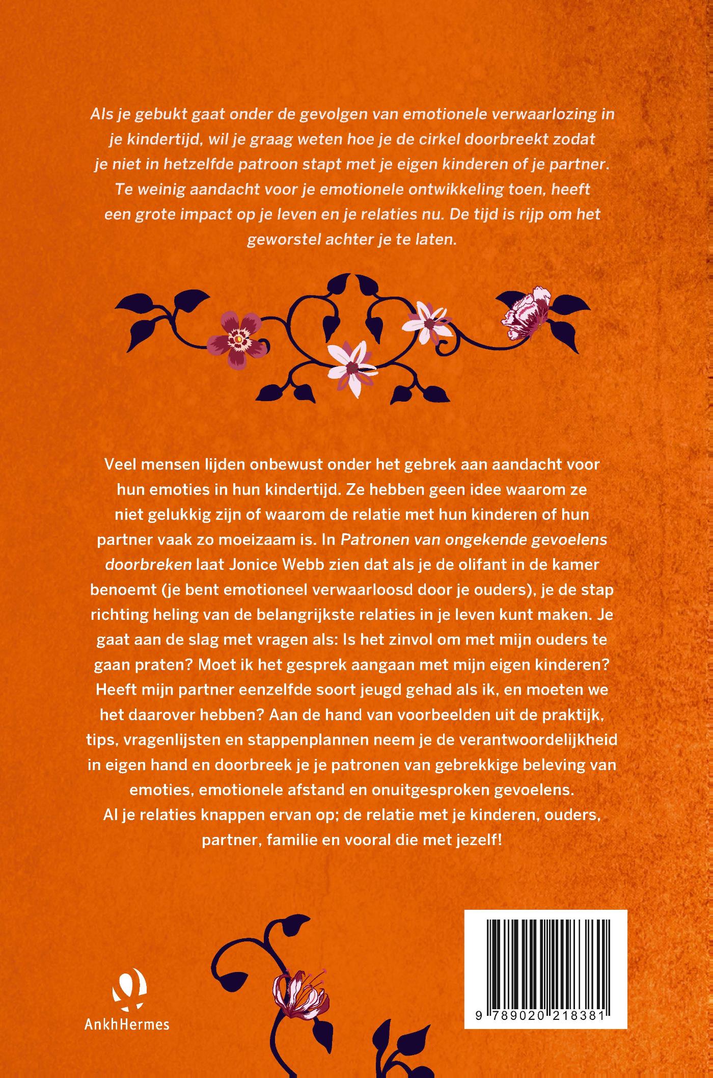 Jonice Webb laat zien hoe je de patronen van gebrekkige beleving van emoties, emotionele afstand en onuitgesproken gevoelens kunt doorbreken. Al je relaties knappen ervan op; de relatie met je kinderen, je partner, je ouders, je familie en vooral ook die met jezelf!