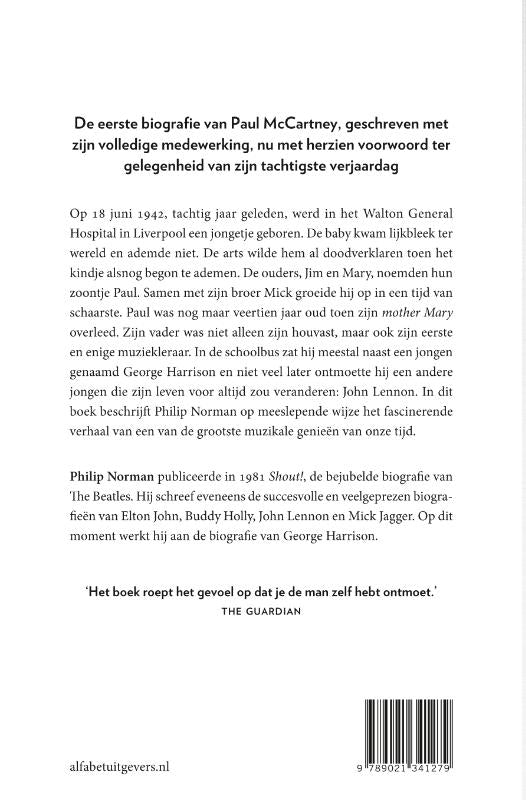 Op 18 juni 1942, nu tachtig jaar geleden, werd in het Walton General Hospital in Liverpool een jongetje geboren. De baby kwam lijkbleek ter wereld en ademde niet. De arts wilde hem al doodverklaren toen het kindje alsnog begon te ademen. De ouders, Jim en Mary, noemden hun zoontje Paul. Samen met zijn broer Mick groeide hij op in een tijd van schaarste. Paul was nog maar veertien jaar oud toen zijn ‘mother Mary’ overleed. Zijn vader was niet alleen zijn houvast, maar ook zijn eerste en enige muziekleraar. In de schoolbus zat hij meestal naast een jongen genaamd George Harrison en niet veel later ontmoette hij een andere jongen die zijn leven voor altijd zou veranderen: John Lennon. In dit boek beschrijft Philip Norman op meeslepende wijze het fascinerende verhaal van een van de grootste muzikale genieën van onze tijd: Paul McCartney.