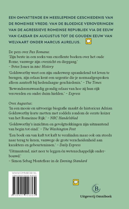 In zijn epos ‘Pax Romana’ laat topauteur Adrian Goldsworthy zien hoe Rome de vrede handhaafde. De Pax Romana is vermaard vanwege een opzienbarend lange periode van vrede en stabiliteit. Maar deze vrede was afgedwongen door oorlog en betekende de facto complete overheersing. De Romeinen waren agressief en meedogenloos en de handhaving van deze vrede kostte miljoenen doden en betekende voor velen slavernij. Maar delen van het rijk waren door de Pax Romana generaties lang verstoken van oorlogen.