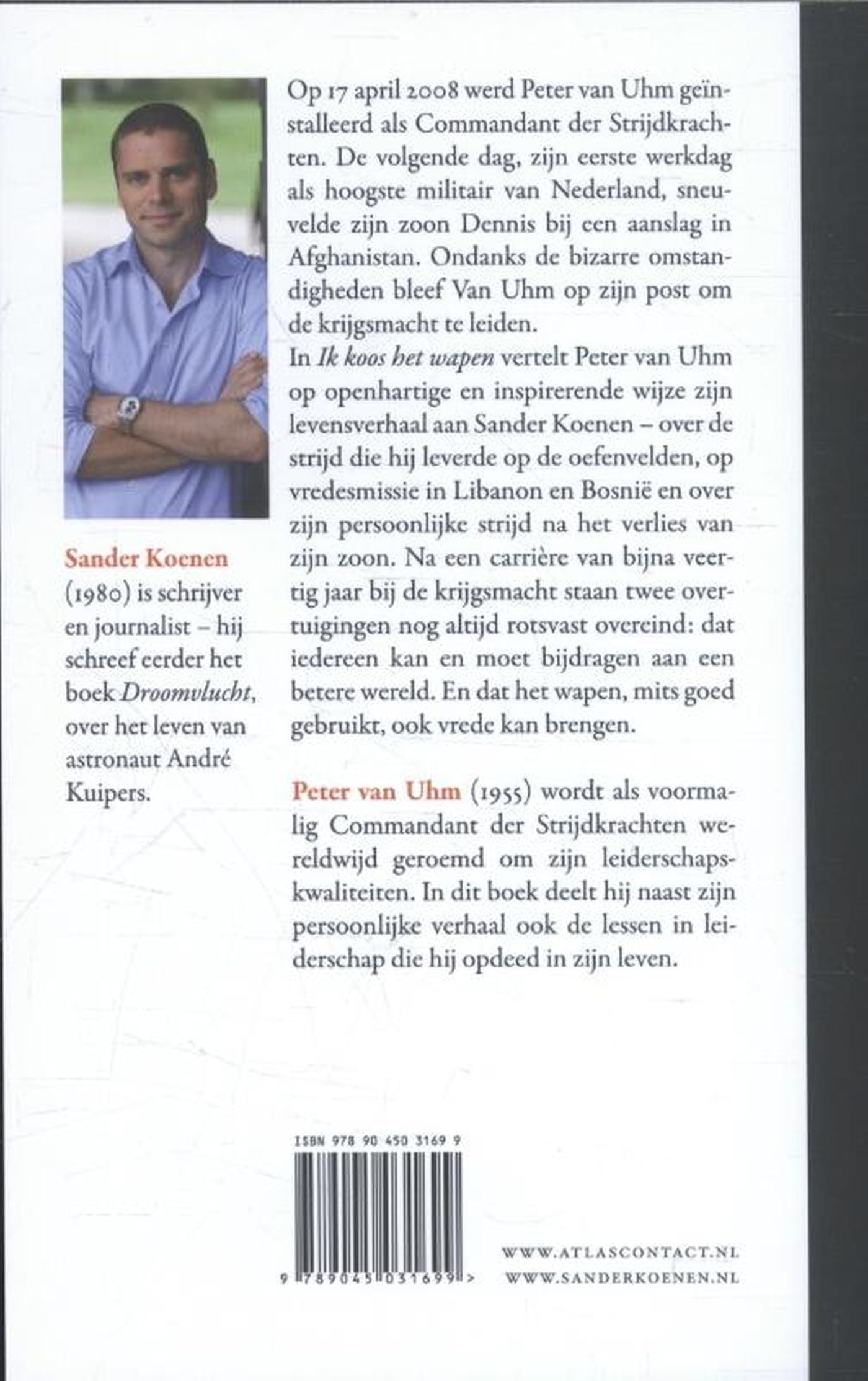 In Ik koos het wapen vertelt Peter van Uhm op openhartige en inspirerende wijze zijn levensverhaal aan Sander Koenen over de strijd die hij leverde op de oefenvelden, op vredesmissie in Libanon en Bosnië en over zijn persoonlijke strijd na het verlies van zijn zoon. Na een carrière van bijna veertig jaar bij de krijgsmacht staan twee overtuigingen nog altijd rotsvast overeind: dat iedereen kan en moet bijdragen aan een betere wereld. En dat het wapen, mits goed gebruikt, ook vrede kan brengen.