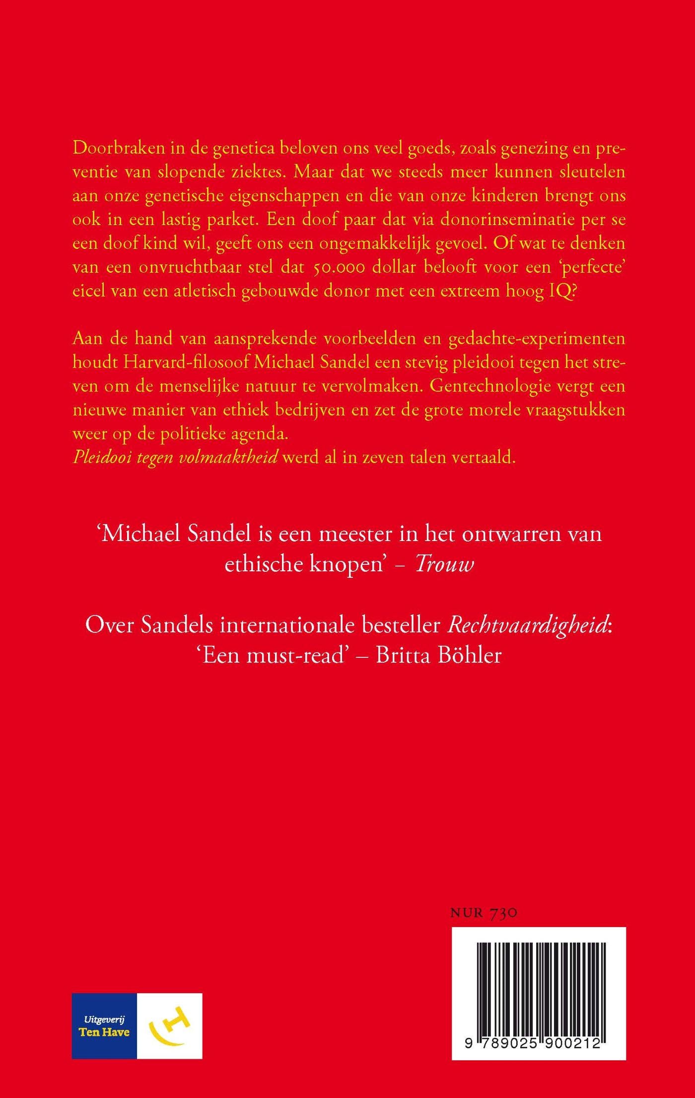 Aan de hand van aansprekende voorbeelden en gedachte-experimenten houdt Harvard-filosoof Michael Sandel een stevig pleidooi tegen het streven naar volmaaktheid van de menselijke natuur. Gentechnologie vergt een nieuwe manier van ethiek bedrijven en zal de grote morele vraagstukken weer op de politieke agenda zetten.