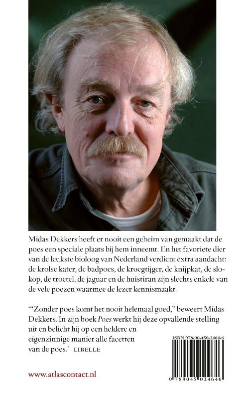 Midas Dekkers heeft er nooit een geheim van gemaakt dat de poes een speciale plaats bij hem inneemt. En het favoriete dier van de leukste bioloog van Nederland verdient extra aandacht: de krolse kater, de badpoes, de kroegtijger, de knijpkat, de slokop, de troetel, de jaguar en de huistiran zijn slechts enkele van de vele poezen waarmee de lezer kennismaakt.