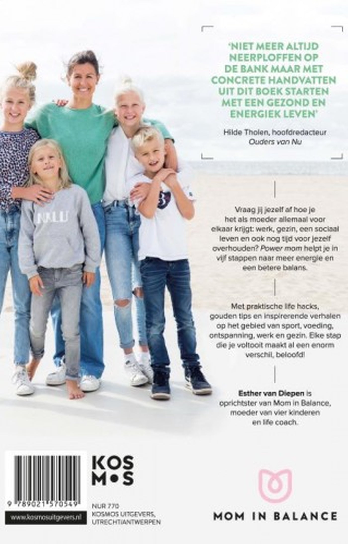 Power mom is het ultieme handboek voor moeders en helpt je in vijf stappen naar meer energie en een betere balans. Geschreven door Esther van Diepen, moeder van vier, succesvol ondernemer en ex-topsporter. Vol met praktische life hacks, gouden tips en inspirerende verhalen op het gebied van sport, voeding, ontspanning, werk en gezin. Elke stap die je voltooit maakt al een enorm verschil.