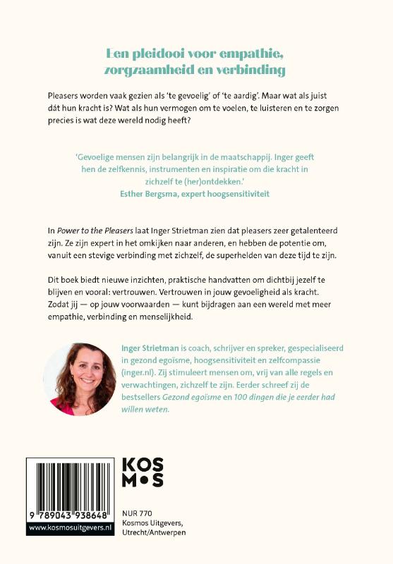 In Power to the pleasers laat Inger Strietman zien dat we in de westerse wereld vaak worden geconditioneerd om succes te meten aan prestaties: je bent zo goed als je laatste overwinning. Wie niet slaagt, wordt snel afgeschreven. Vooral pleasers, die vaak twijfelen aan hun eigen waarde en zichzelf zwaar bekritiseren, vallen uit in deze veeleisende cultuur. Maar dit boek pleit voor het omarmen van sensitiviteit als een kracht.