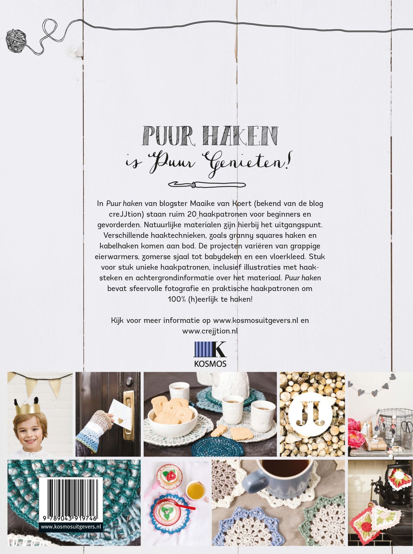 In Puur haken van Maaike van Koert (bekend van haar blog CreJJtion) staan mode- en woonaccessoires in Scandinavische stijl. Alle haakpatronen, van sjaals tot dekens, staan stapsgewijs beschreven met hanig haakschema’s. Prachtige, frisse foto’s maken dit boek naast praktisch ook heel sfeervol! De haakpatronen in Puur haken variëren in niveau waardoor dit boek geschikt is voor zowel beginnende als gevorderde haaksters. Een musthave voor iedere haakfanaat!