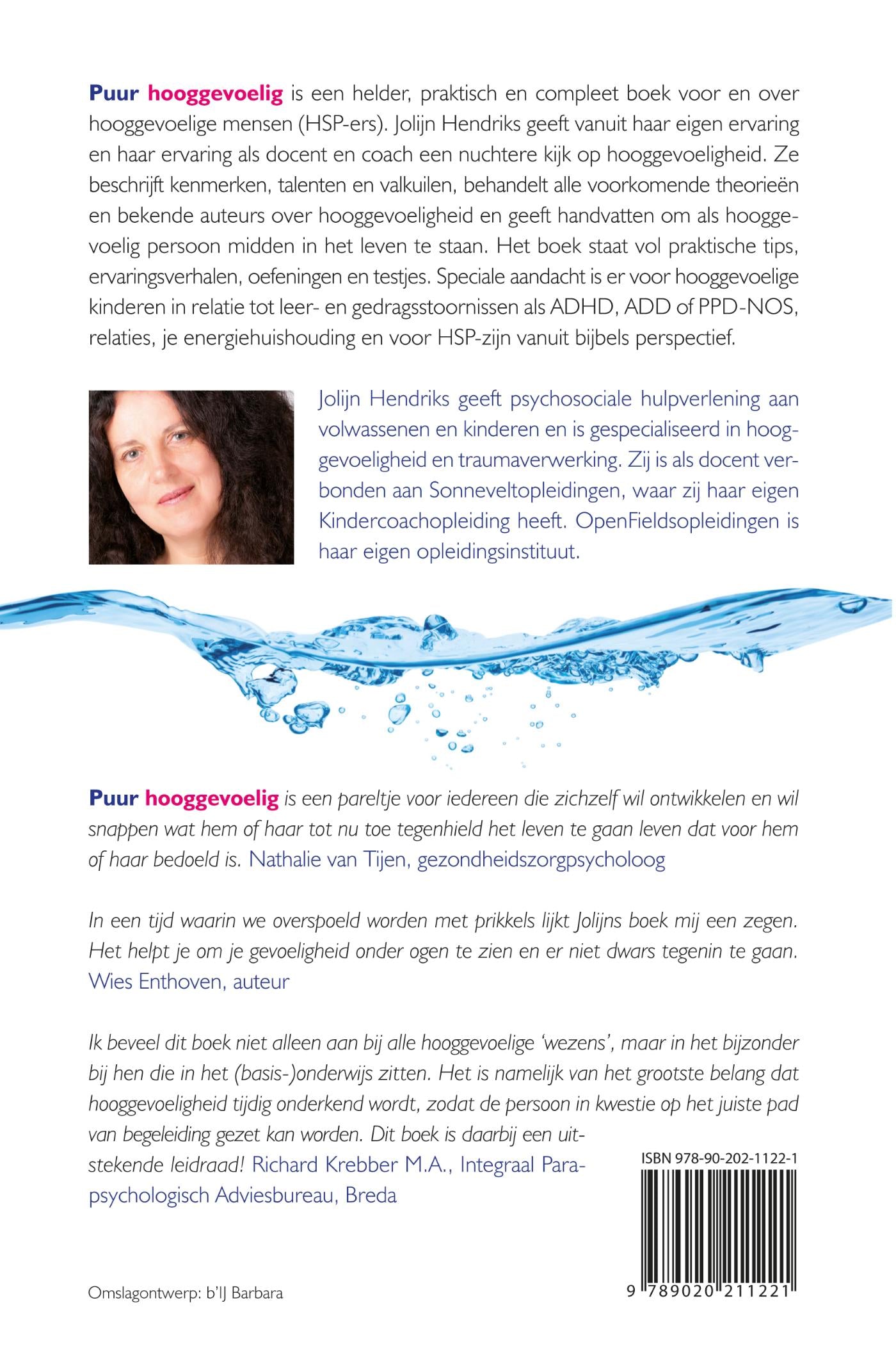 Puur hooggevoelig, een compleet en praktisch boek voor hooggevoelige mensen van Jolijn Hendriks is een echt praktisch, niet zweverig boek voor hooggevoelige mensen. Jolijn Hendriks geeft in haar boek Puur hooggevoelig vanuit een psychologische benadering eenvoudige en begrijpelijke handvatten en tips om je als hoogsensitief mens al snel beter in je vel te voelen. Als hooggevoelig persoon hoef je niet altijd maar binnen te blijven of je rustig te houden. Juist door gebruik te maken van je talenten en je hooggevoeligheid leer je om volop in het leven te staan en te genieten.