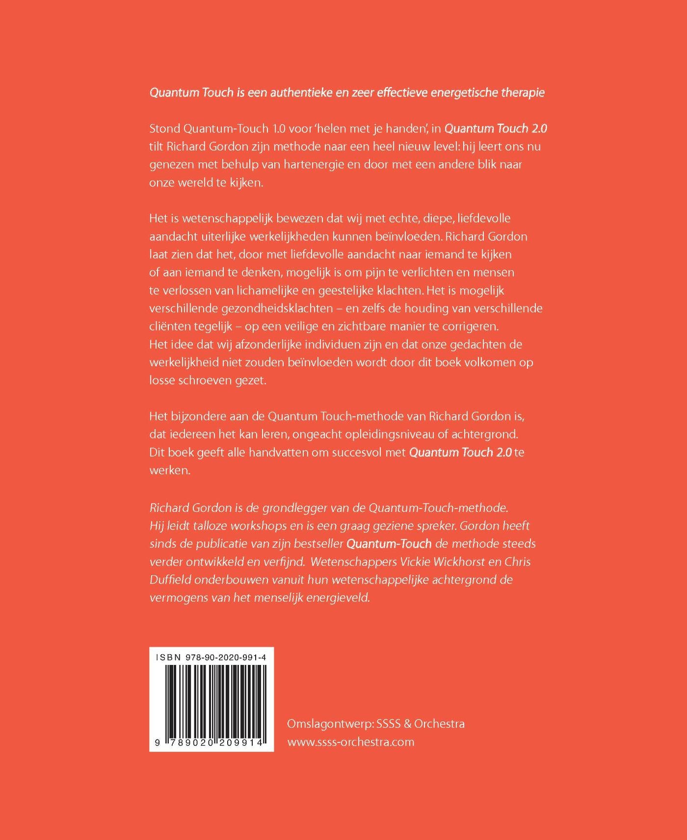Stond `Quantum-Touch 1.0 voor `helen met je handen , in `Quantum Touch 2.0 tilt Richard Gordon zijn methode naar een heel nieuw level: hij leert ons nu genezen met behulp van hartenergie en door met een andere blik naar onze wereld te kijken. Bijzonder hierbij is, dat Gordon er hierbij vanuit gaat dat mensen alleen zichzelf kunnen genezen. Degene die Quantum Touch 2.0 aan een ander geeft, helpt diegene zichzelf te genezen.