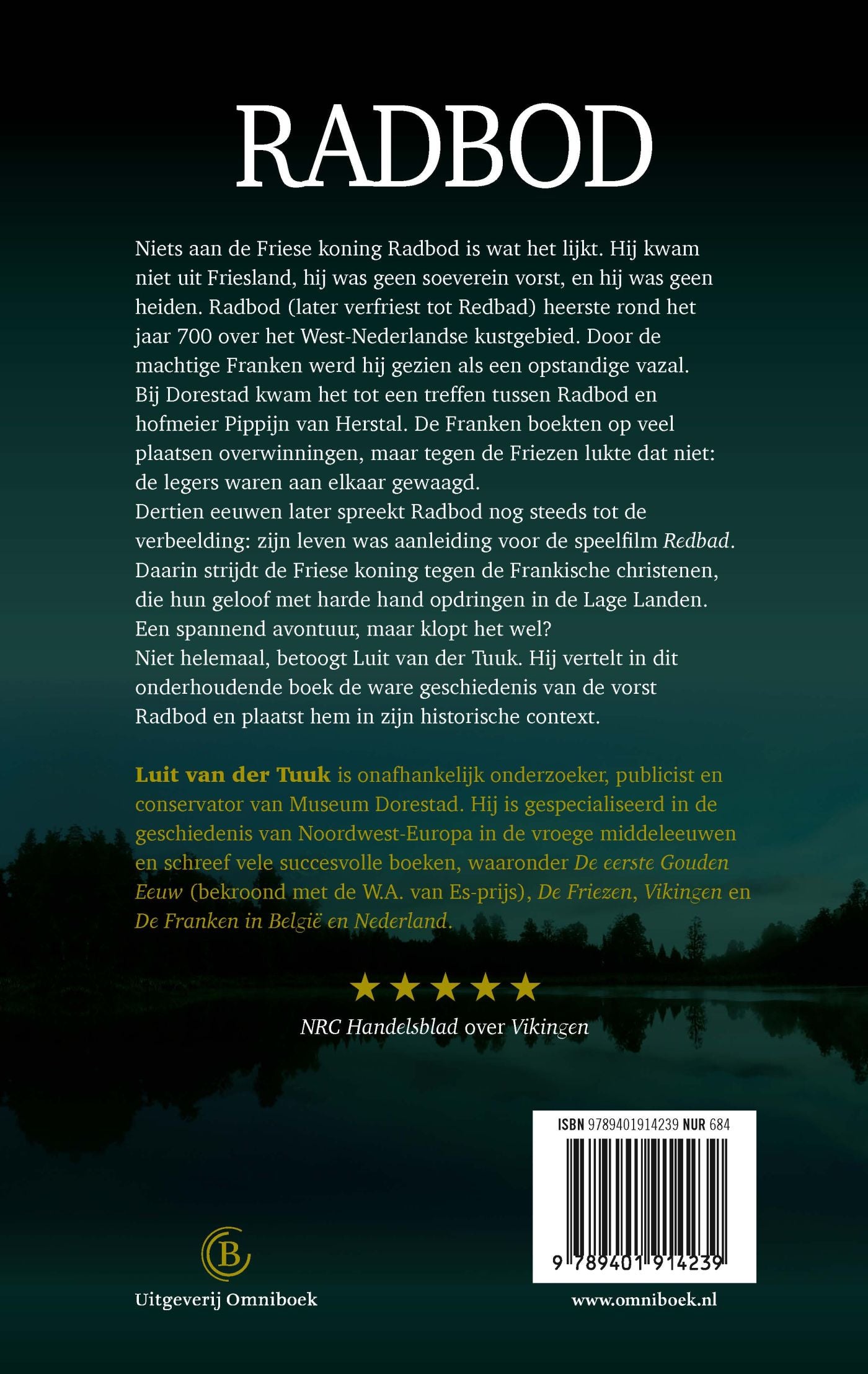Luit van der Tuuk scheidt in ‘Radbod’ feit van fictie en vertelt de ware geschiedenis van de historische vorst Radbod. De Friese koning Radbod heerste rond 700 na Christus over een groot kustgebied van Vlaanden, Holland, Friesland, Groningen en Oost-Friesland tot aan Bremen. In de in 2018 verschenen film ‘Redbad’ voert de legendarische Friese koning met hulp van de Vikingen een heftige strijd tegen de christenen die met harde hand hun geloof opdringen in de Lage Landen. Van der Tuuk, expert op het gebied van de vroege middeleeuwen, toont aan dat de film vol zit met anachronismen en onjuistheden. De film én het boek ‘Radbod’ zetten de buiten Friesland bijna vergeten Redbad weer terug op de plek waar hij hoort, als één van de belangrijkste en machtigste vorsten die de Lage Landen ooit heeft gehad.