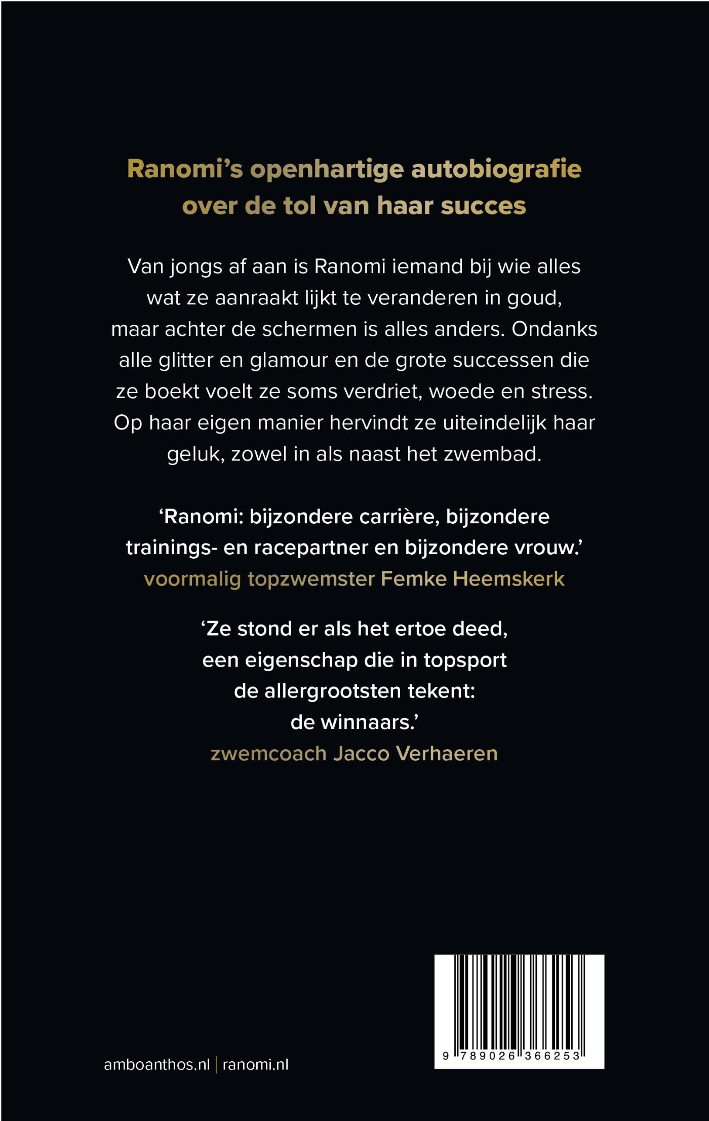 Ranomi Kromowidjojo wordt al van jongs af aan gezien als iemand bij wie alles wat ze aanraakte veranderde in goud. Op haar zeventiende won ze immers al olympisch goud in Peking. Maar achter de schermen was er veel verdriet en moest Ranomi stap voor stap op eigen benen leren staan. Zo kwam ze er beetje bij beetje achter wie ze eigenlijk was, los van de zwemster die zo bekend was dat bij het publiek alleen een voornaam volstond. Op haar eigen unieke manier hervond ze uiteindelijk haar geluk, zowel ín als náást het zwembad.